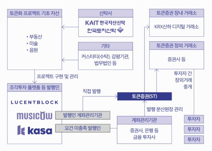 - 2023년 2월 ‘토큰증권 발행·유통 규율체계 정비방안’에서 STO의 기본 구조 제시