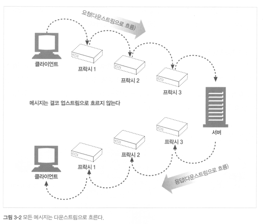 - HTTP 메시지는 강물처럼 항상 다운스트림 방향으로 흐른다
