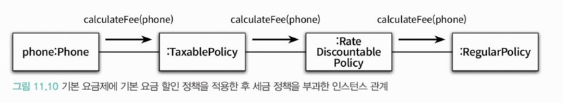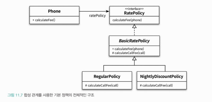 - Phone 내부에 RatePolicy에 대한 참조가 포함되어 있다. → 합성