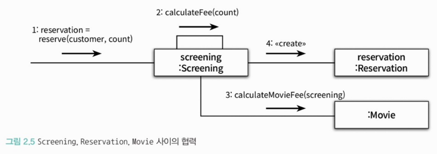 screening.reserve(...)처럼 “예약해 줘”라는 메시지를 Screening 객체에게 전달하는 것.