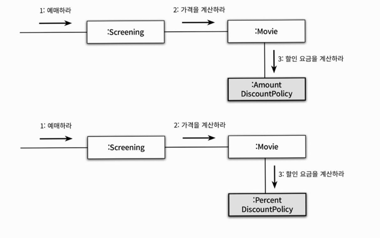 - 객체라는 존재를 지우고, ‘할인 요금을 계산하라’라는 메시지에 응답할 수 있는 대표자를 생각하라.
