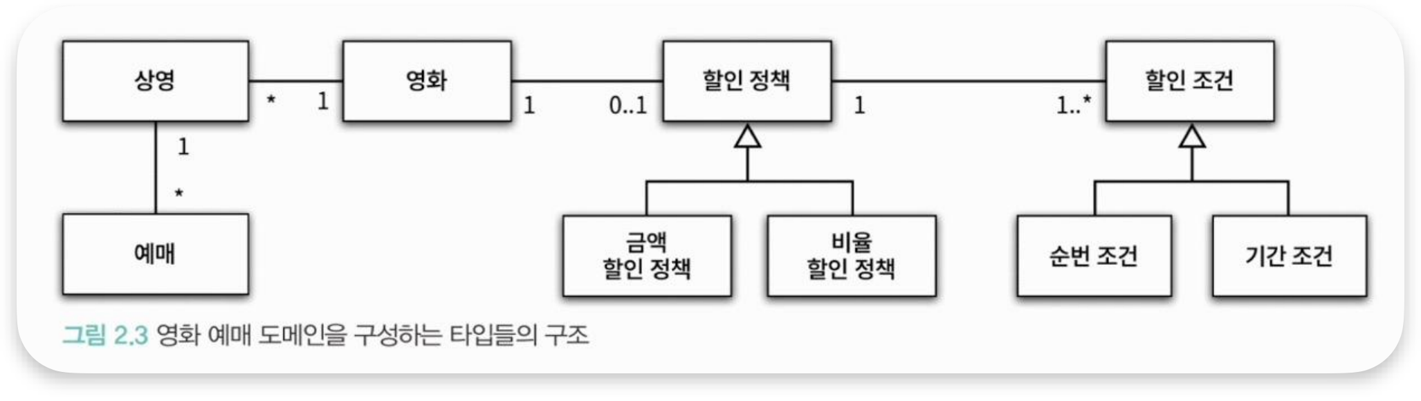 - 2장 : 할인 정책이라는 개념이 하나의 독립적인 개념으로 분리돼 있음.