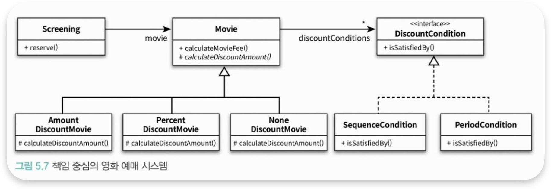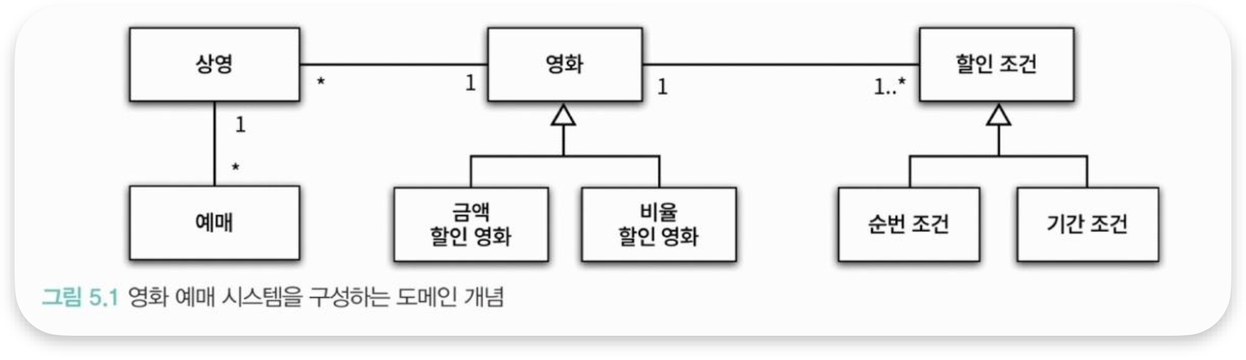- 5장 : 할인 정책이라는 개념이 영화의 종류로 표현되어 있음.
